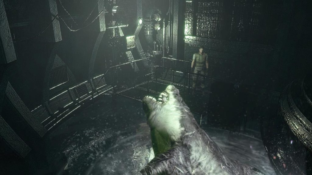 We had to suspend belief a few times in the original Resident Evil, but you could find some twisted logic in there if you looked hard enough. But all that logic goes right out of the window as you clamber down a ladder (hidden behind a couple of bookcases in a random bedroom no less), and discover a broken 750,000 litre aquarium and a few angry sharks swimming around in a basement lab. I genuinely have a multitude of questions… Who exactly is buying genetically modified-shark weapons? Who approved building a lab under a guys bed? How do Umbrella plan on getting the sharks out of that lab? And who had to pay the water bill after filling that tank up?
