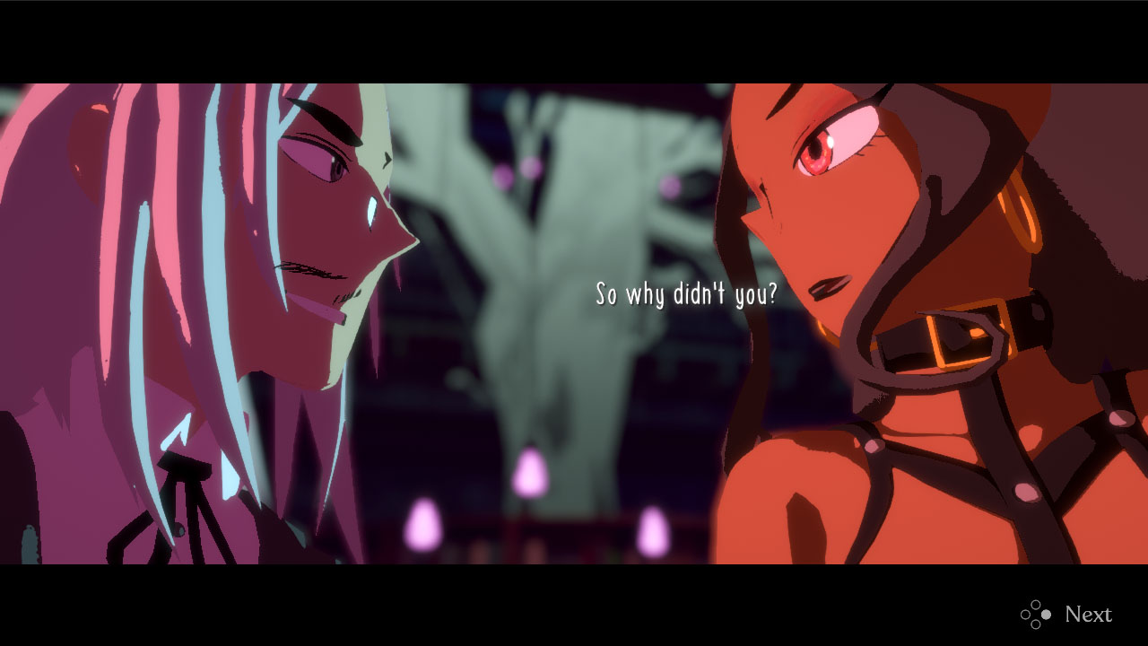 Despite a short run time, Necrobarista suffers from long load times with the first boot of the game seeming to take an absolute age. Subsequent loads between levels take just enough time for me to question whether my Switch has crashed or not, a fact that’s not helped by the machine’s fan that seems to kick into overdrive whenever an asset has to be loaded. The biggest issue with the game is the Studio Mode, which I would assume is a sort of photo mode, but I was unfortunately unable to test it as every time I entered the option, the system would crash back to the main menu. A quick search revealed this is unique to the Switch version and a fix has not been found.