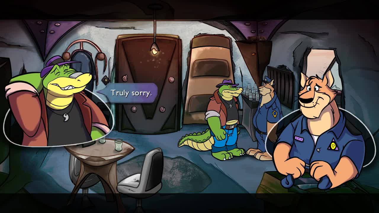 As with many adventure games, the choices you make throughout will shape the future, and the ending you will achieve. As you traverse the levels, both within and outside the dome, you will encounter other anthropomorphic creatures, gangs of ne’er-do-wells, and other poor, unfortunate souls with a myriad of problems that you can help solve for them. Or not. It’s entirely up to you. Want to fight crime with your wits, swaying people with your charm and detective skills to puzzle out answers? Or would you rather duke it out with your meaty, ex-boxer lizard fists and pummel the truth from suspects? You do you, friend! But remember, your actions have consequences, and there may be outcomes that make you wish you had made a different choice.