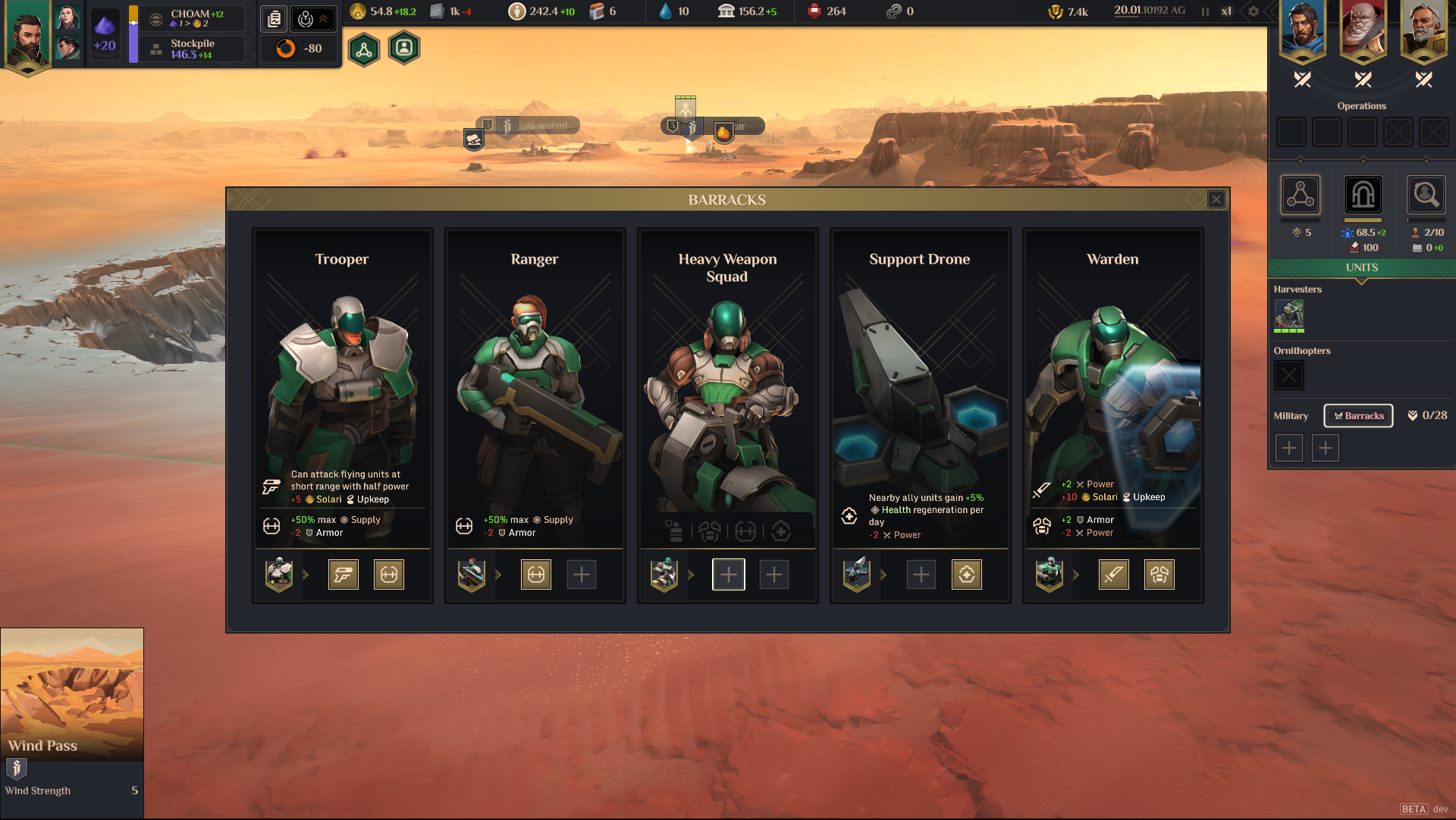In the latest update, flying units have been added to give a new layer of strategy to the battlefield. The aerial machines include ships and frigates that are capable of traversing the map without fear of sandworms.