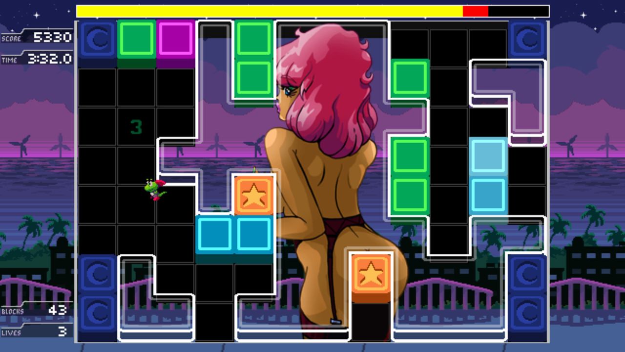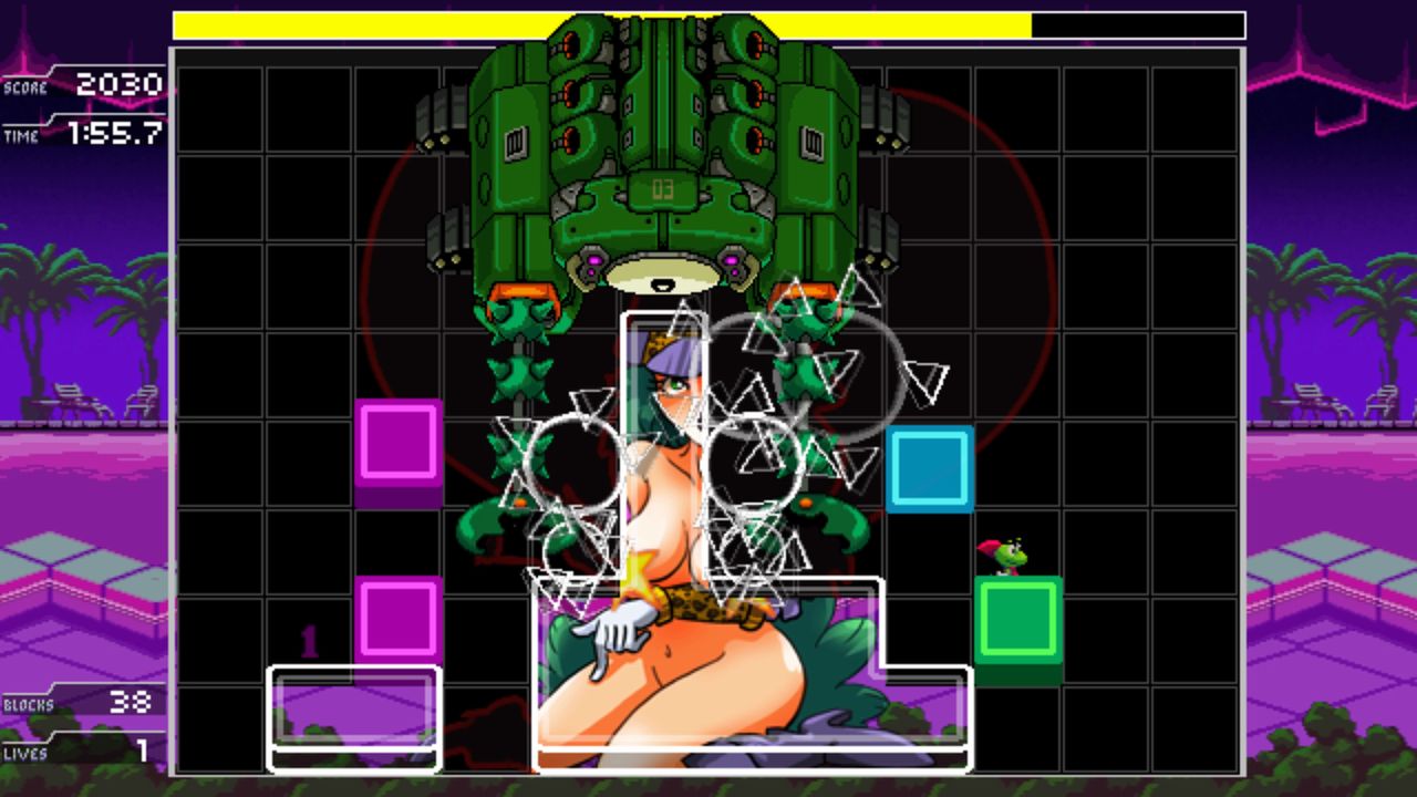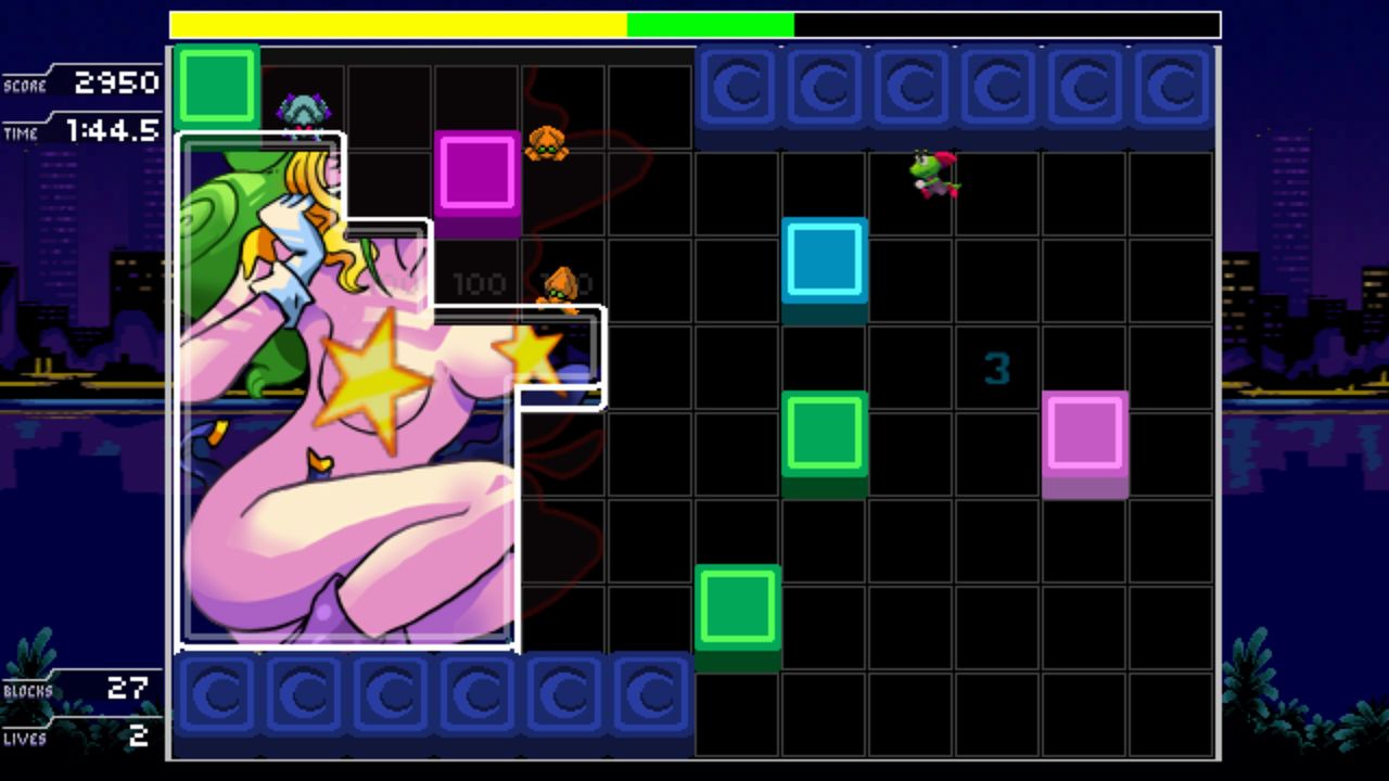 A puzzle game with a sexy twist. Crawlco Block Knockers from developer Cosmi Kankei is a match-3 style arcade puzzler that gradually reveals scantily clad anime ladies. Titillation aside, this puzzle game actually has some depth. The 16-bit game has players jump, kick and smash through a huge variety of stages while avoiding enemies and use quick thinking to take down massive bosses in order to progress with the puzzle solving.