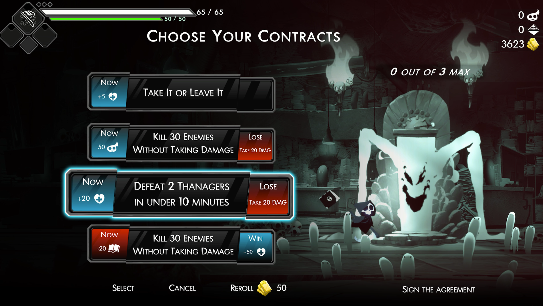 Have a Nice Death features a darkly charming atmosphere and as the CEO of Death Incorporated, players have a plethora of perks, including granting themselves helpful curses that provide permanent passive bonuses or buffs and accepting special contracts that provide challenges and bonuses.