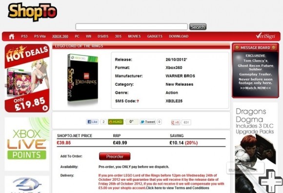 LEGO toy boxes and a listing of the game, which has now been taken off the site, suggests the game will be released on the Xbox 360 on 26th October this year. This coincides closely with The Hobbit hitting cinemas this December.