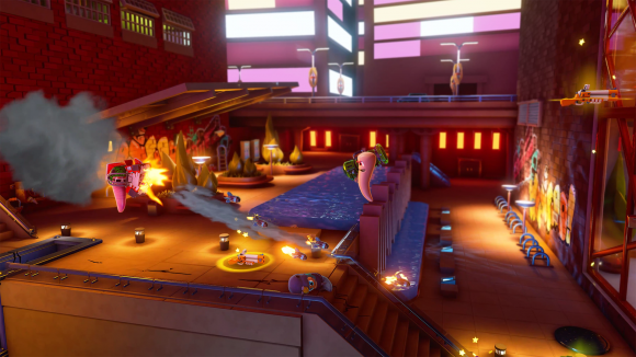 Worms Rumble, for PlayStation 5, PlayStation 4, and PC, bringing fast-paced, real-time action to the award-winning series for the very first time. Today’s launch debuts with three maps: Missile Mall, Portal Park, and Transforming Towers, with free additional content and updates set for release over the coming weeks and months. This opening salvo of content delivers three modes: Deathmatch (which also allows players to queue as a party with their friends) and solo & team-based variants of battle royale (Last Worm Standing and Last Squad Standing) in matches containing up to 32 players.