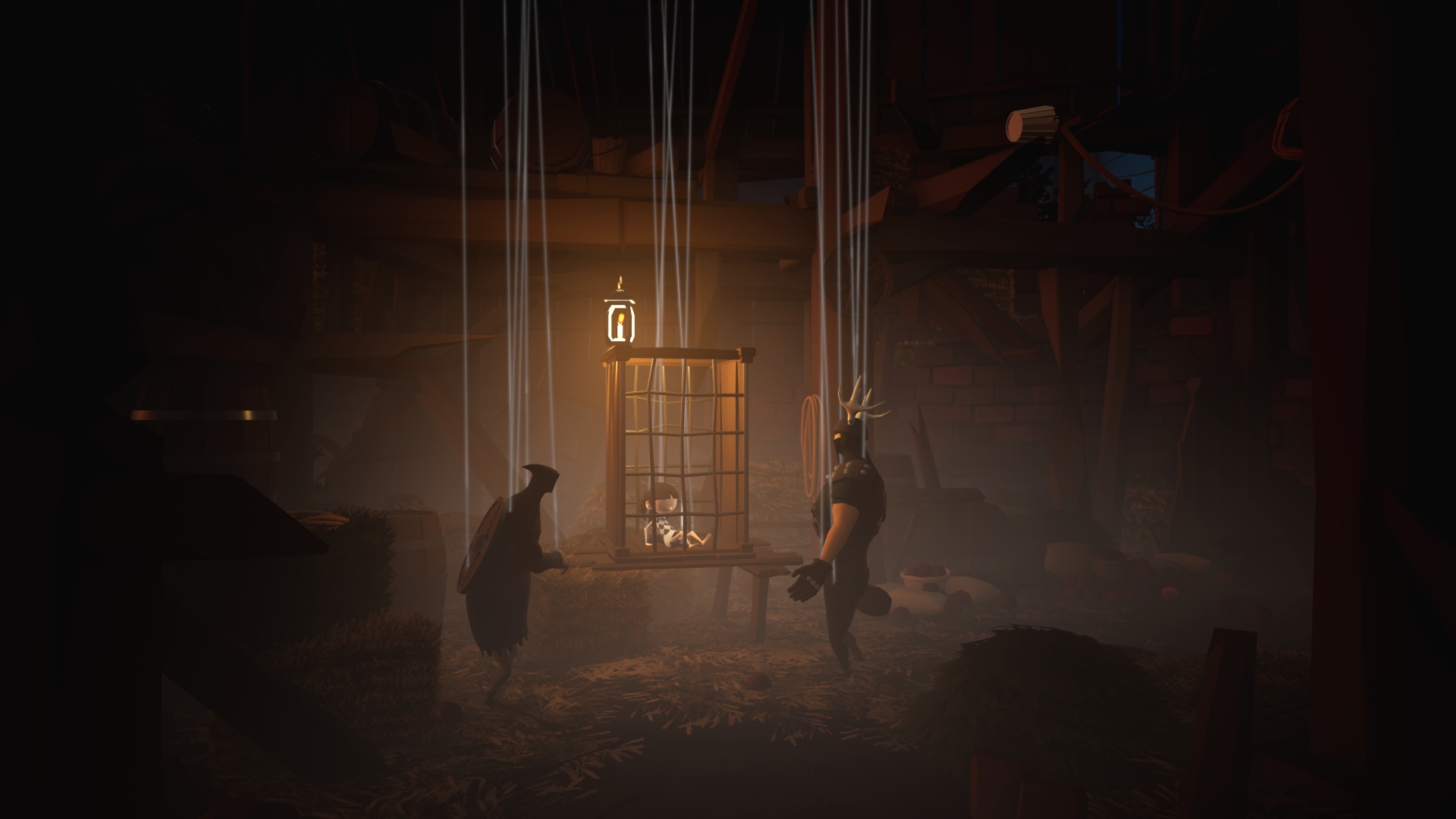 Abby’s story starts out with her performing in a circus. Here you learn about jumping, throwing and climbing and why you should always trust bears, and that bears are our friends. After a brief stint in a cage and some musings from me about how far we’ve come with child labour laws, Abby flees to find a new life. As you follow her journey you’ll pass through some of the best looking landscapes I’ve seen in games for a long time. It seems such a shame that you pass through each set piece so quickly, which could offer an explanation as to why Abby’s movement feels so anaemic – if I was the art director for A Juggler’s Tale I’d take it very personally if players were allowed to blitz past all that hard work. The art style and sound design have clearly been a labour of love. Earlier in the story the themes are bright and summery and reinforce an almost child-friendly atmosphere of adventure and cutesy hijinks. That doesn’t stick around though, and as you progress the story the environments get progressively more spooky and austere as Abby’s journey takes a turn for the worse. Initially the colourful puppets seemed safe but I slowly realised just how creepy they are. I had a great moment of dissonance when I started a puzzle and found myself saying “Oh, that’s a corpse on a rope” and it gets more bleak from there.