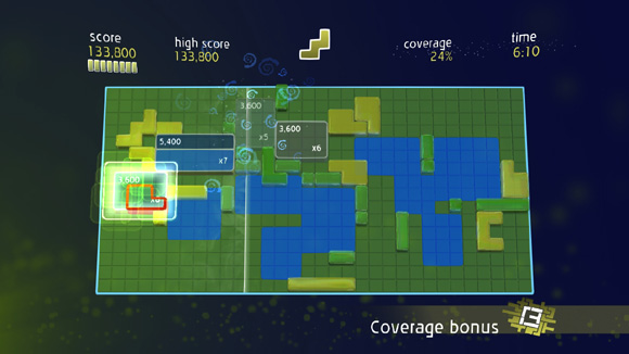 Although Super Chime Deluxe can take a little time to get used to, the game itself is incredibly enjoyable. This enjoyment is only increased as we go into the multiplayer mode. There is a co-op mode and a challenge mode, where up to four players can battle or help each other complete the grid. Unfortunately if you’re playing in the co-op mode, if a level is completed the points are saved, but it’s a good way to try and get some of those unachievable trophies. The challenge mode is exactly the same as the regular mode of play, except each player needs to get as many blocks as they can and own the majority of the grid and they can steal other player’s blocks from them as well. In the challenge mode the colours used can sometimes conflict with the background on the grid and make it hard to understand what needs to be completed and how far along in the game you are.