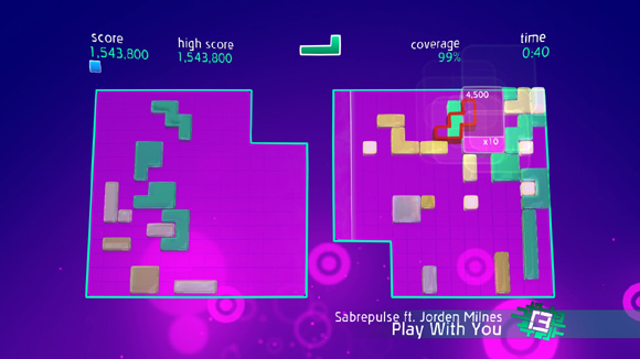 In the first instance, there is little but background music of the song, with few notes or delicacies to indicate that it’s a true song. As the player adds shapes to the grid, the music starts to change and when a block has been completed, the music changes again. This is achieved by a tracking bar that scans the grid continuously and the music changes as the grid hovers over it. By the end of the grid the player can hear what the music for the game truly sounds like and with each level being different, from classic dance to beat-boxing there’s a plethora of music to listen to.
