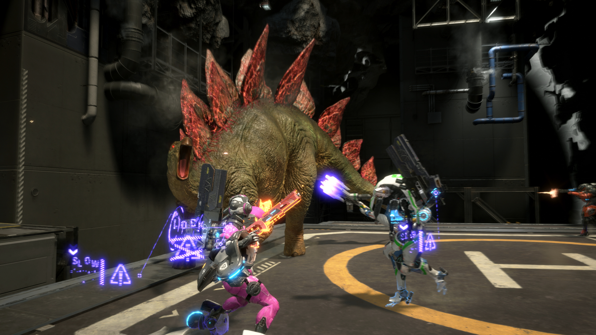 The game begins with a news bulletin, one that does well in smoothly hinting toward the game overview as well as eluding to class selection. The year is 2043, and in a fashion similar to that of the film Pacific Rim, pilots are trained to ‘neurolink’ into specially designed exosuits, designed by the corporation Aibius, in order to defend humanity against dinosaurs. At the heart of it all is a highly advanced next generation AI named Leviathan, because nothing bad ever happens in a story that involves really smart AIs… or dinosaurs for that matter.
