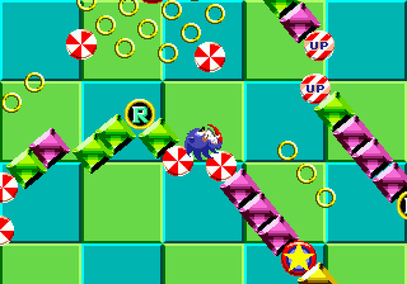 The Special Zone is a place of complete insanity where the player has to attempt to navigate their way around a complex maze where you have no control over the direction of Sonic – it’s hard and it takes time to get used to getting to the centre. If the player can manage to reach the centre of the maze, Sonic has the chance to get the Chaos Emerald and take back some control from Robotnik.