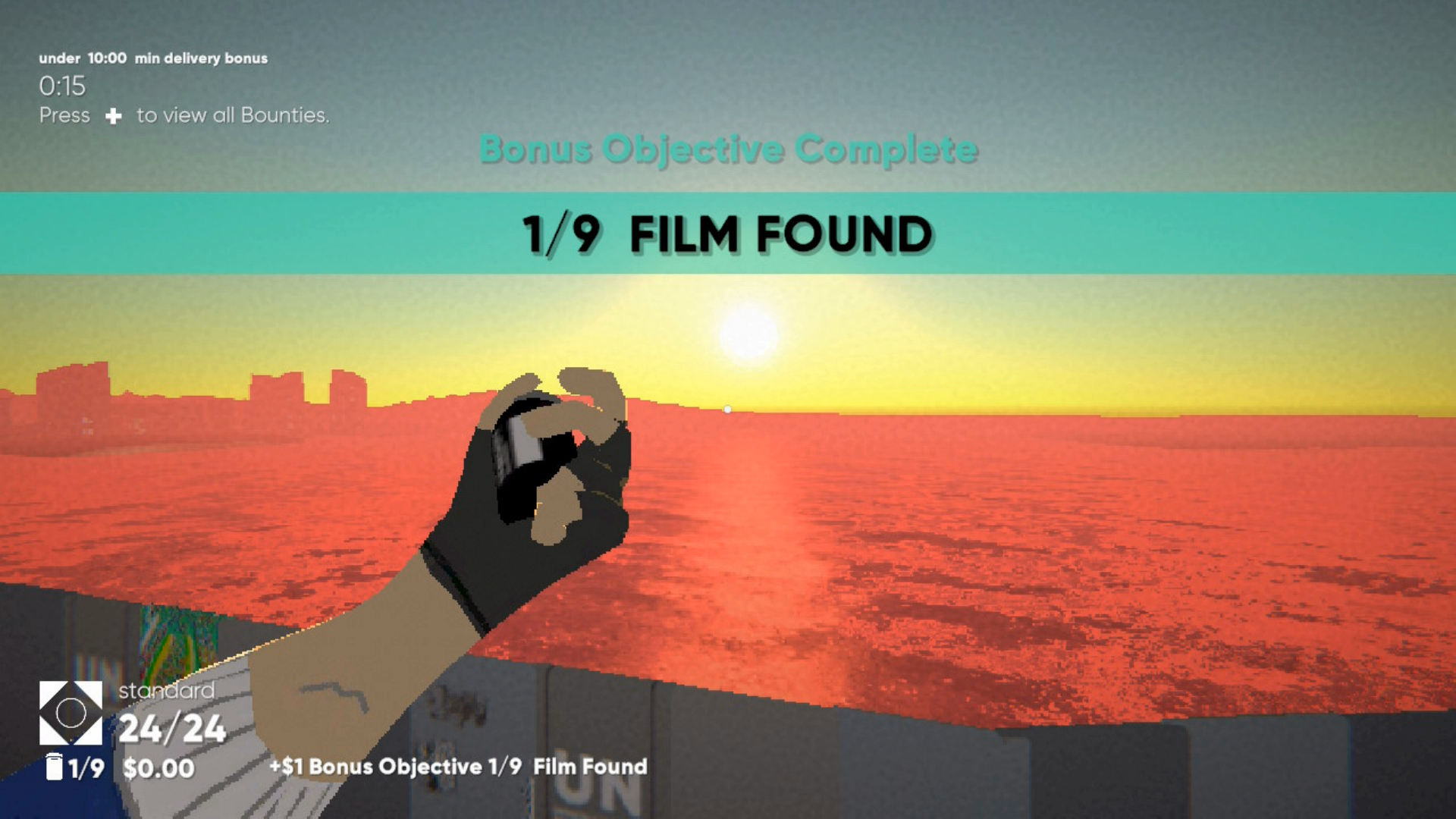 From a gameplay perspective, the main objective of each level is to complete a set of photo ‘bounties’, requiring the player to capture photographs of various different items that are stashed around the level, working as a scavenger hunt of sorts. There’s about ten items that you’re required to photograph before you can deliver the pictures and move on to the next level, and there are some optional snaps requested that will give you bonus points too. There’s a ‘recreate this postcard’ challenge on every level that is good fun, if not a little simple due to the game signposting where to take the picture from. Things are more difficult than simply finding the items and snapping a pic though, as you’re forbidden from taking pictures where a ‘blue bottle jellyfish’ is in the frame – of course, they’re scattered all over the place and it’s tricky taking the perfect picture. On top of the jellyfish concern, the bounties often need to be taken with a specific lens on your camera, requiring you to find just the right spot to stand in to ensure you get all the items in the frame without something being in the way or having a jellyfish creep into view. Whilst it’s never mentioned anywhere, you also have a limited amount of film with which to take the bounty pics, and you’ll have to start again if you take too many bum shots and can’t find any more film rolls that are hidden away amongst the detritus in the levels.