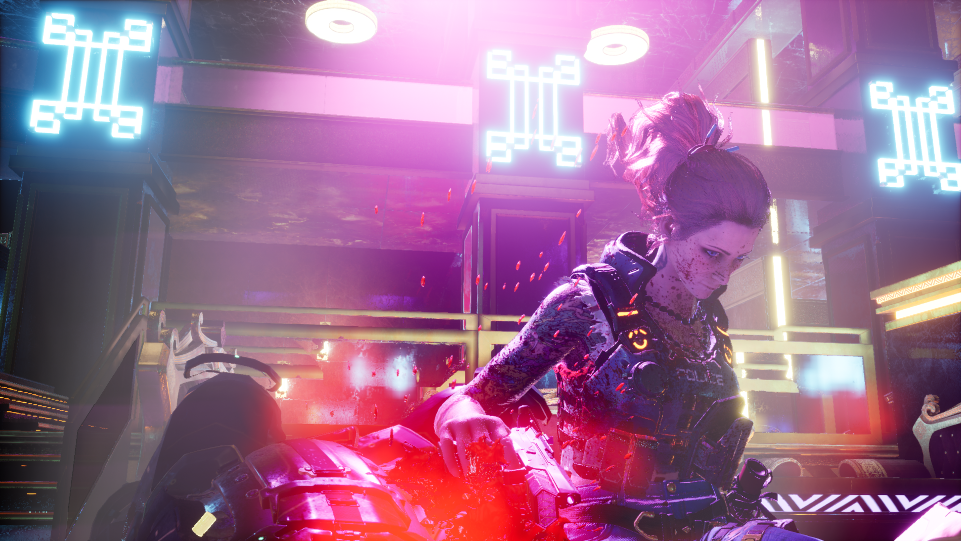 Before I get too carried away, let’s run through the story. Wanted: Dead is set in a futuristic Hong Kong, in a world where governments have fallen and corporations rule in a violent competition for profit and greed. The police act as little more than bodyguards to the highest bidder and Lieutenant Hannah Stone, complete with a mechanical arm and her Zombie Unit, are tasked with uncovering a corporate conspiracy in a set up that is not at all Robocop. Yes, Wanted: Dead ticks a lot of tropey boxes: big conglomerates taking over governments and the police becoming little more than security guards, but that’s not what we’re here for. Thankfully 110 Industries knows that, and while the plot is very paint by numbers stuff (the only stereotype that’s missing is Murphy Stone shouting “Dead or alive, you’re coming with me”), the journey is where people should focus most of their attention.