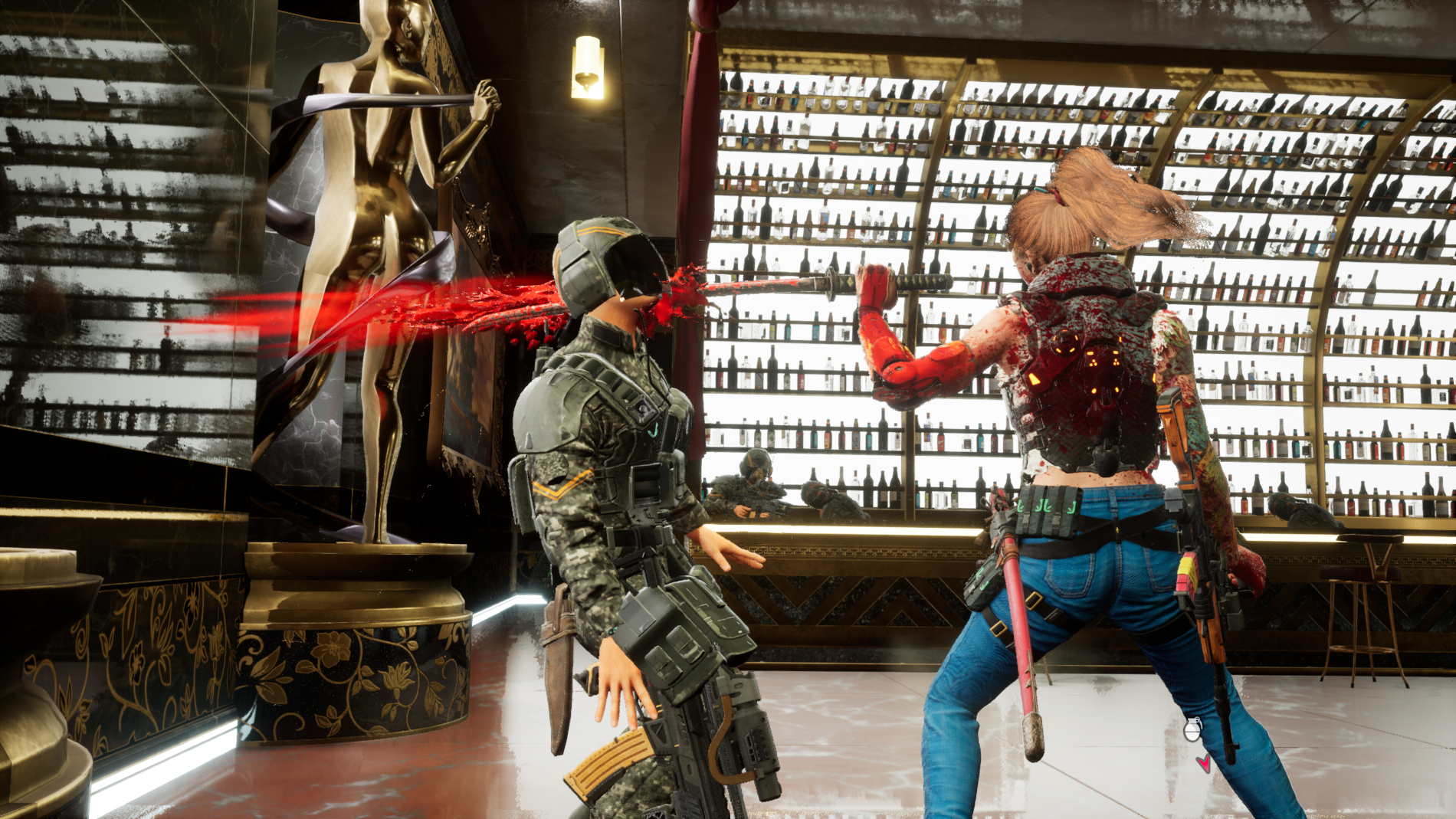 The enemies are tough, can absorb a lot of bullets and even land a few suckerpunches here and there, which normally wouldn’t be a problem, except it highlights Wanted: Dead’s biggest omission – the spacing between save points. I’d have preferred more variance in the level setups, or simply more checkpoints so I could have a rest and help break the monotony that the game became. Don’t get me wrong, there are a number of times where you can save your progress throughout any given map, but it often seems they are either too spread out, or bookending a short corridor. Having to run through half a level where I took on wave after wave of goons, only to be gently tapped on the noggin with the butt of a rifle and be sent back to an hour earlier is more soul destroying than anytime spent in Elden Ring – at least From Software had the decency to put in an autosave function. This is compounded by the game’s boss fights which ramp up the difficulty for no apparent reason.