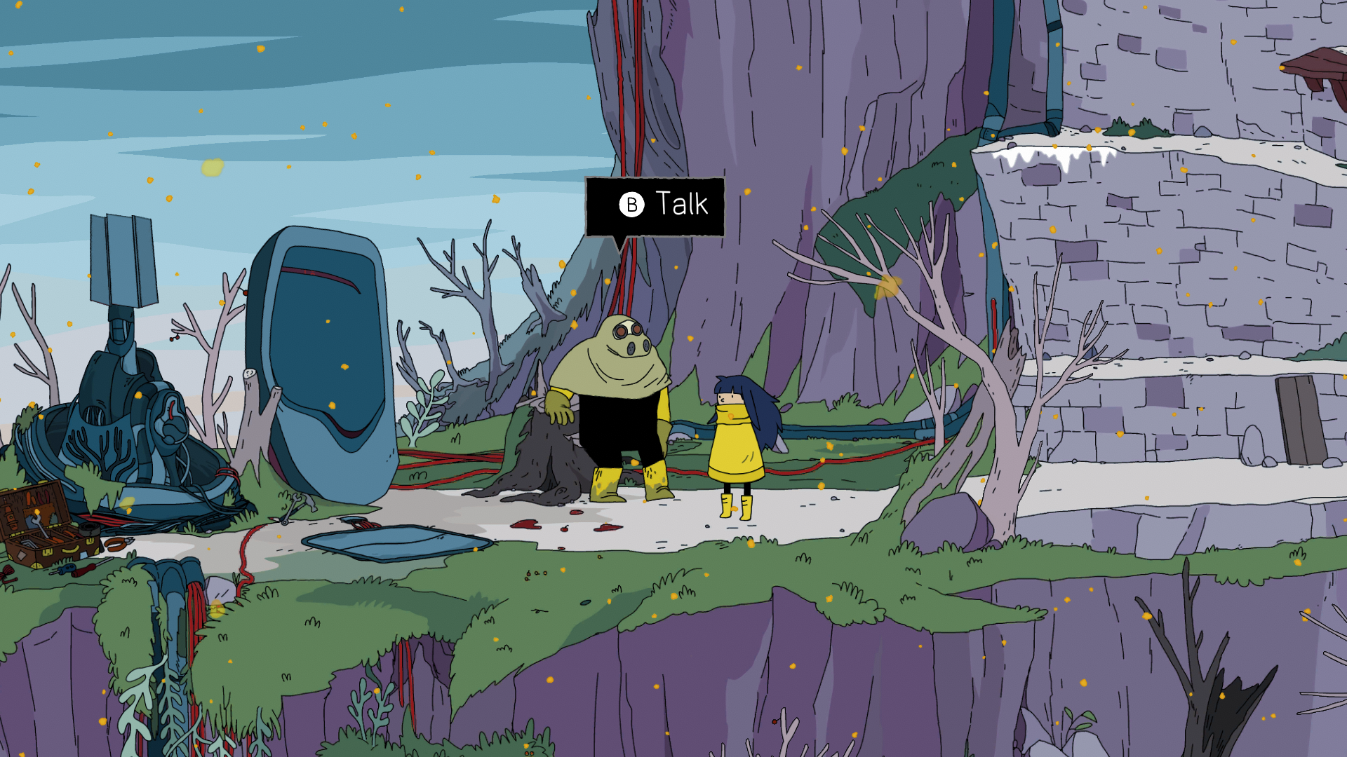 In terms of the gameplay, Minute of Islands is a quite standard 2D puzzle platformer. You guide Mo around the wonderfully detailed environments discovering story nuggets, talking to the remaining survivors and working to clear the air. This is largely done through finding and activating a series of air purifiers that clear the fungal spores from the air, then opening the giants’ underground dwellings and reawakening them. One particularly obtuse puzzle at about the half-way point of the game aside, none of these really gave me any pause, but the challenge of the puzzles isn’t really the point of the game. They can be a little repetitive, but the mechanics of solving them – mostly using the “omni-switch” multi-tool thingamajig – feel pleasantly tactile, and they work well in service of the story. That said, if a challenging platform experience is what you are looking for you would be better off looking elsewhere.