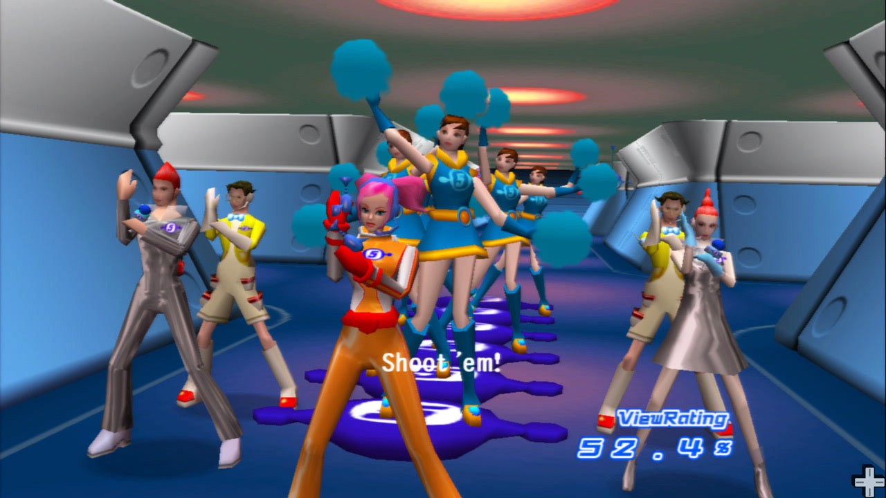 Ulala, the 22 year old news reporter for Space Channel 5 does this though, so that automatically makes her far more interesting than Diversity. The plot of Space Channel 5 Part 2 is very simple, dance and battle your way through a variety of different space stations dotted around the universe and battle against the evil Rhythm Rogues who are attempting to take over the universe. The Rhythm Rogues are a dance troupe of evil space aliens who are capturing innocent people in various locations and forcing them to dance badly!